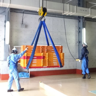 工場や倉庫で使用される天井クレーンの点検・メンテナンスを行っています。